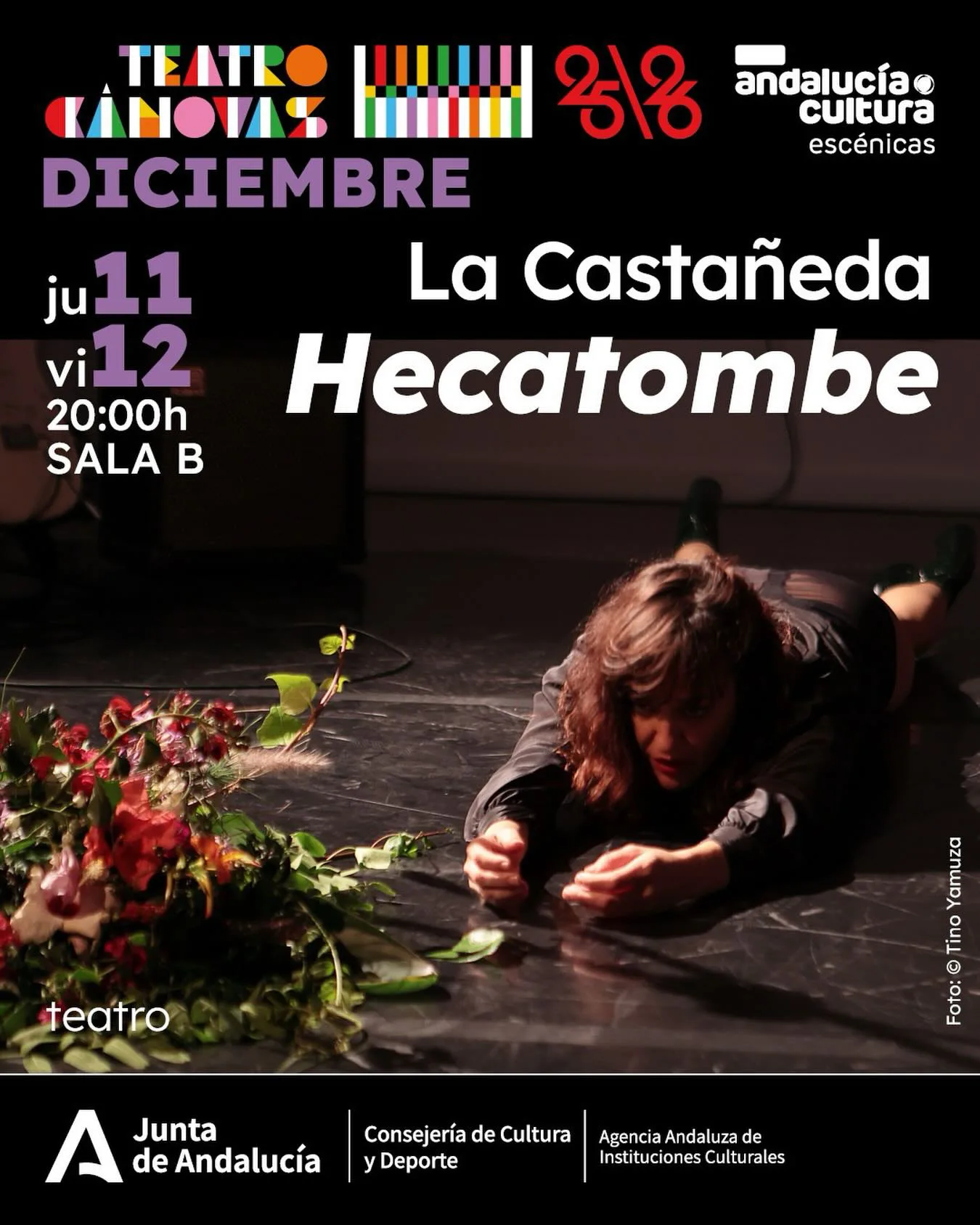 El estreno tuvo lugar en la Sala B del Teatro Cánovas, un espacio íntimo, casi de laboratorio, que obliga al público a situarse muy cerca del centro de gravedad emocional de la obra. Y, sin embargo, se puede intuir que Hecatombe tiene una respiración más amplia, que su material, a la vez físico, poético y sonoro, pide crecer, expandirse, probarse en escenarios de mayor escala donde la amplitud espacial le permita desplegar su peso y su potencia.