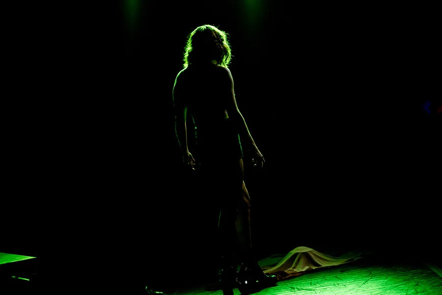 Castañeda, que firma e interpreta la obra, sostiene el espectáculo desde una presencia polifacética que es probablemente su rasgo más destacado. Su cuerpo y su voz funcionan como instrumentos que se afinan y desafinan a propósito: el canto emerge en momentos clave, como una grieta emocional y una forma de expresar. La expresión corporal es firme, matizada, a ratos arrebatada y a ratos contenida.