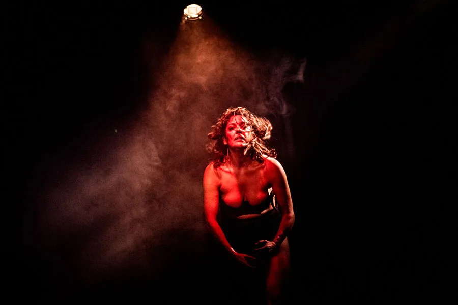 Lo que hace de Hecatombe una experiencia particular es su manera de crecer. La obra empieza con una aparente calma, casi como si fuera un ritual preparatorio, pero poco a poco se adentra en zonas más profundas, más incómodas, más sensoriales. Ese avance in crescendo es uno de sus mayores aciertos: la pieza se va cargando de capas, de resonancias, de preguntas sin respuesta. Y es precisamente en ese aumento de intensidad donde la dramaturgia encuentra su mejor ritmo. El monólogo final actúa como un vértice emocional. No es simplemente un cierre narrativo, sino una condensación del viaje. Castañeda se queda casi desnuda de artificios, sosteniendo la palabra con una claridad y una vulnerabilidad que le dan sentido al trayecto que hemos presenciado. Es un momento que respira verdad, que deja un silencio lleno de electricidad en la sala.