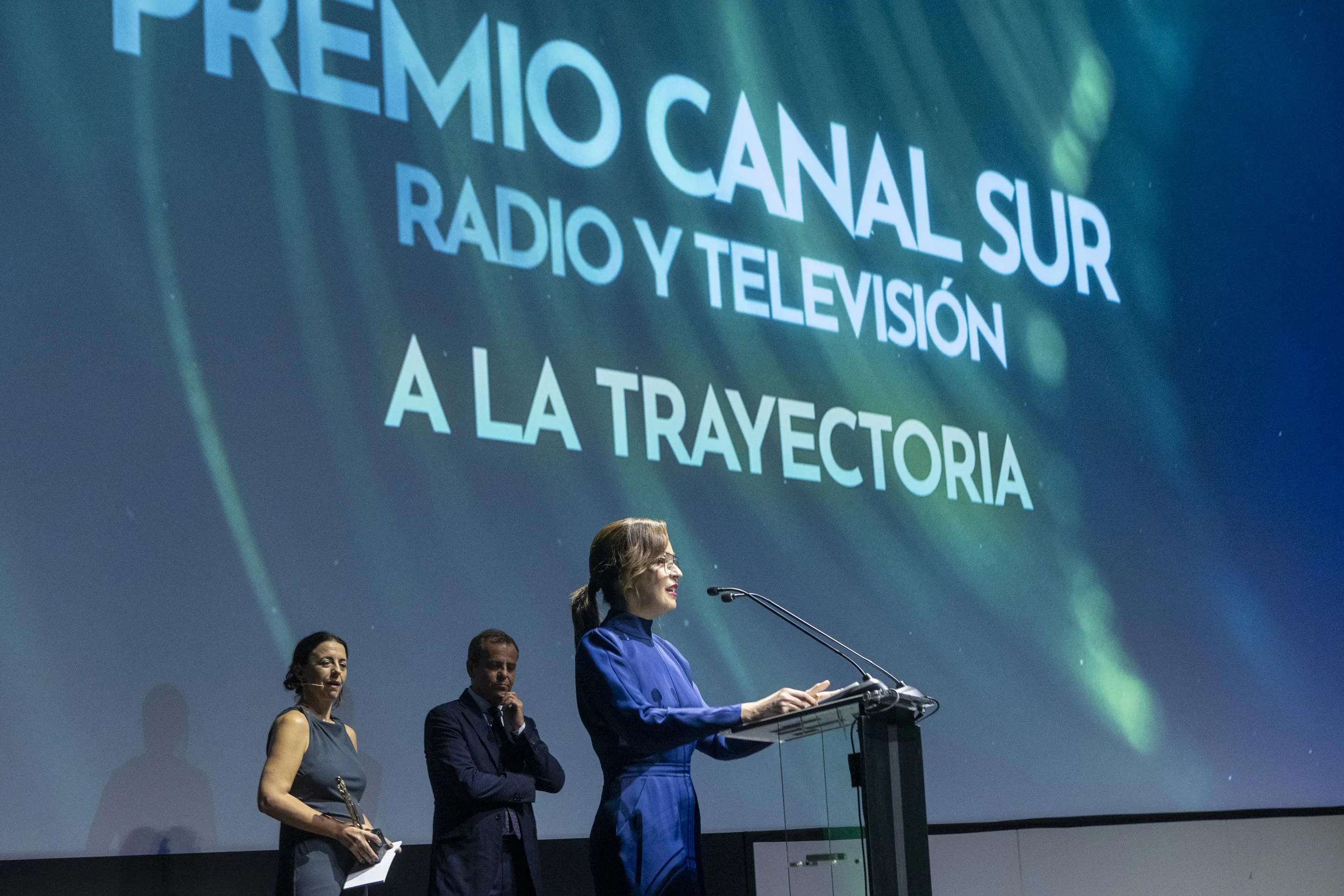 A la ceremonia asistieron directivos y responsables de RTVA, así como representantes institucionales de la ciudad, entre ellos la delegada de Turismo y Cultura y vicepresidenta del Instituto de la Cultura y las Artes de Sevilla (ICAS), Angie Moreno, y el director del Festival, Manuel Cristóbal.